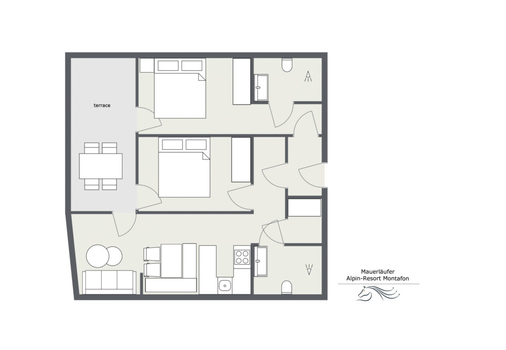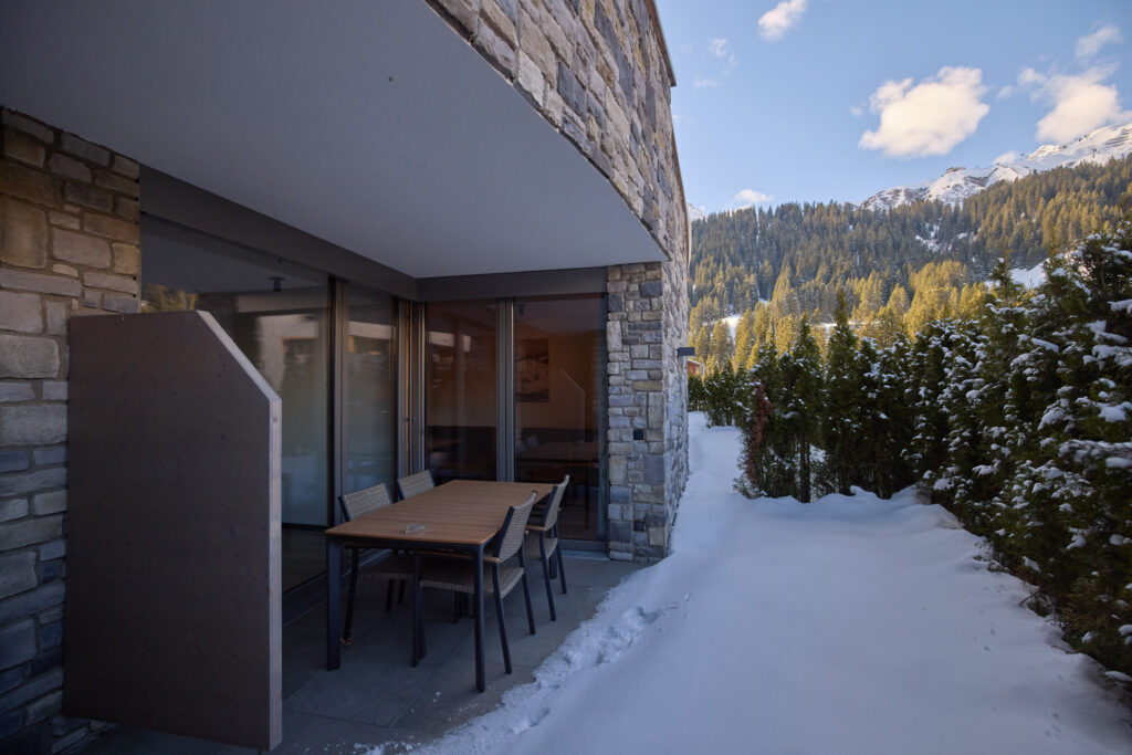 Zur Wohnung gehört eine ca. 11 m² große Terrasse – perfekt für den ersten Kaffee am Morgen oder einen entspannten Ausklang nach dem Skitag. Genießen Sie ungestört die schönen Ausblicke auf die Gargellener Bergwelt.